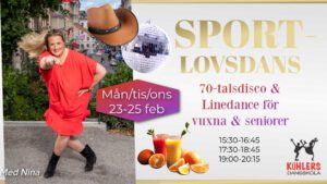 Sportlovsdans i Stockholm – 70-talsdisco och Linedance med Nina Zacco på Kühlers Under sportlovet, måndag–onsdag 23–25 februari, erbjuder vi 70-talsdisco och linedance för vuxna och seniorer med fokus … Läs mer