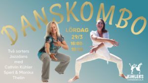 DANSKOMBO Cathrin och Monika bjuder in till två jazziga danslektioner för vuxna och seniorer. För dig som längtar efter en skön och livgivande dans. Kursen är en kombo, där du under 2,5 timmar (inkl en kort paus) får dansa Jazzmix med Cathrin och Jazz med västafrikanska och afrokubanska influenser med Monika. Cathrin Kühler Sperl driver KÜHLERS dansskola och är aktiv som jazzdanspedagog med flertalet kurser … Läs mer